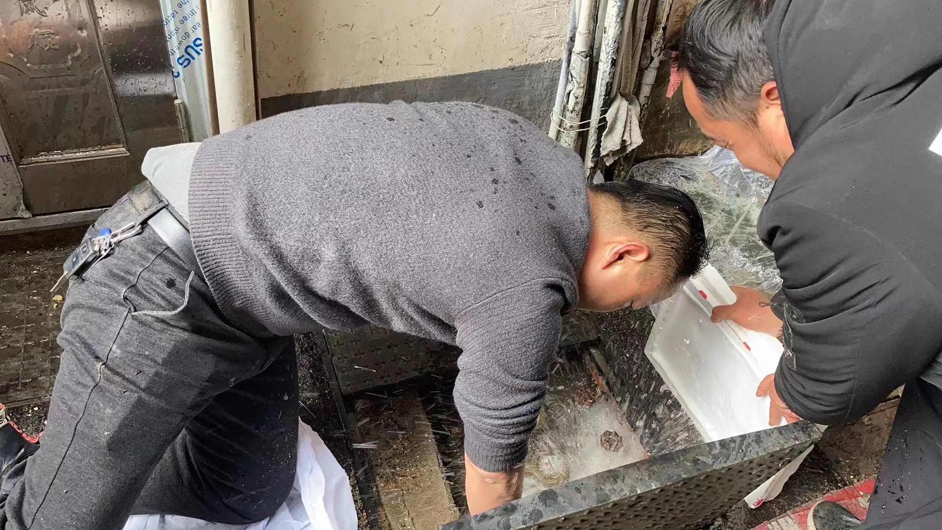 與此同時,客戶服務(wù)中心的搶修人員在小區(qū)幫助用戶解凍通水,為了便于操作,搶修人員不戴手套跪在已經(jīng)上凍的表井池旁伸進(jìn)冰冷水中進(jìn)行維修,雙手凍得通紅,渾身直打顫,絕大多數(shù)人搶修人員的手、腳都凍傷了,但為了用戶們能夠盡快用上水,可他們卻義無反顧,“我們也知道冷,但是沒辦法,戴上手套不好操作,為讓用戶早些有水可用,我們一直都是這么做的”。為了用戶們能夠盡快用上水,他們的工作沒有停息過。