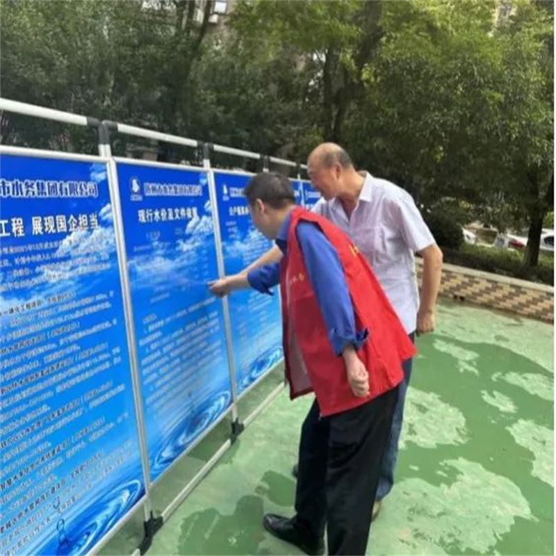 活動(dòng)現(xiàn)場,工作人員們通過設(shè)置咨詢臺(tái)、擺放展板、發(fā)放宣傳冊(cè)、填寫調(diào)查問卷等形式,耐心細(xì)致的向社區(qū)居民宣傳供水服務(wù)范圍、服務(wù)承諾,如何報(bào)裝開戶、如何便捷繳納水費(fèi)等信息知識(shí)。以解決群眾用水問題為導(dǎo)向,主動(dòng)征求、收集居民在用水方面的意見和建議。
