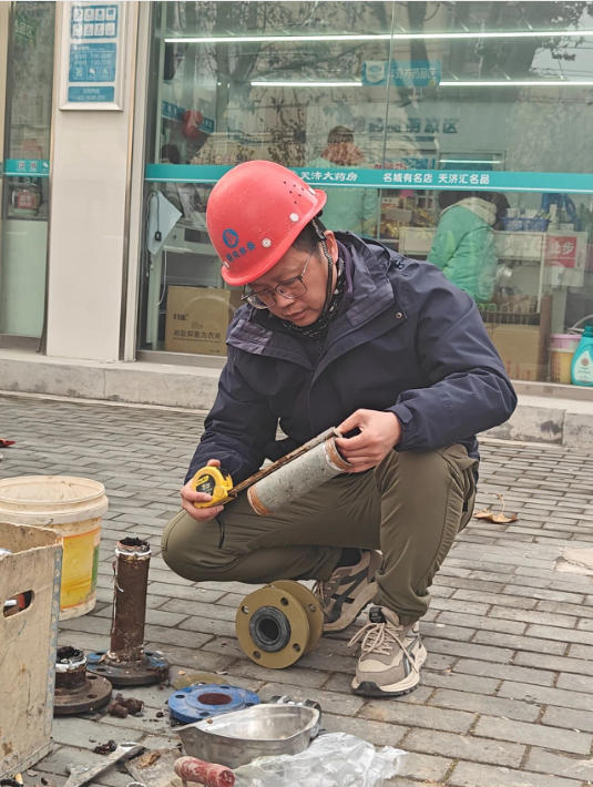 2025年6月11日,夏季高峰供水的序幕剛剛拉開,擔負主供水任務的先覺廟水廠源水管道卻突發(fā)爆管,不及時搶修將嚴重影響居民正常生活和城市運轉(zhuǎn)。接到緊急通報后,劉吉第一時間帶領搶修班組火速奔赴現(xiàn)場,冷靜分析破損情況、周邊地質(zhì)環(huán)境及管線布局,迅速會商制定最優(yōu)搶修方案,為了最大限度減少對市民用水的影響,必須趕在次日早高峰用水來臨前完成修復并通水,這意味著他們要與時間緊急賽跑。